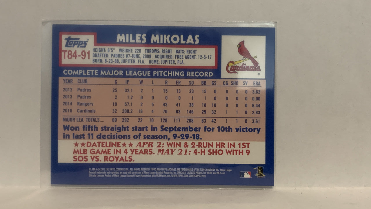 T84-91 Miles Mikolas St Louis Cardinals 2019 Topps Series 1 Baseball Card