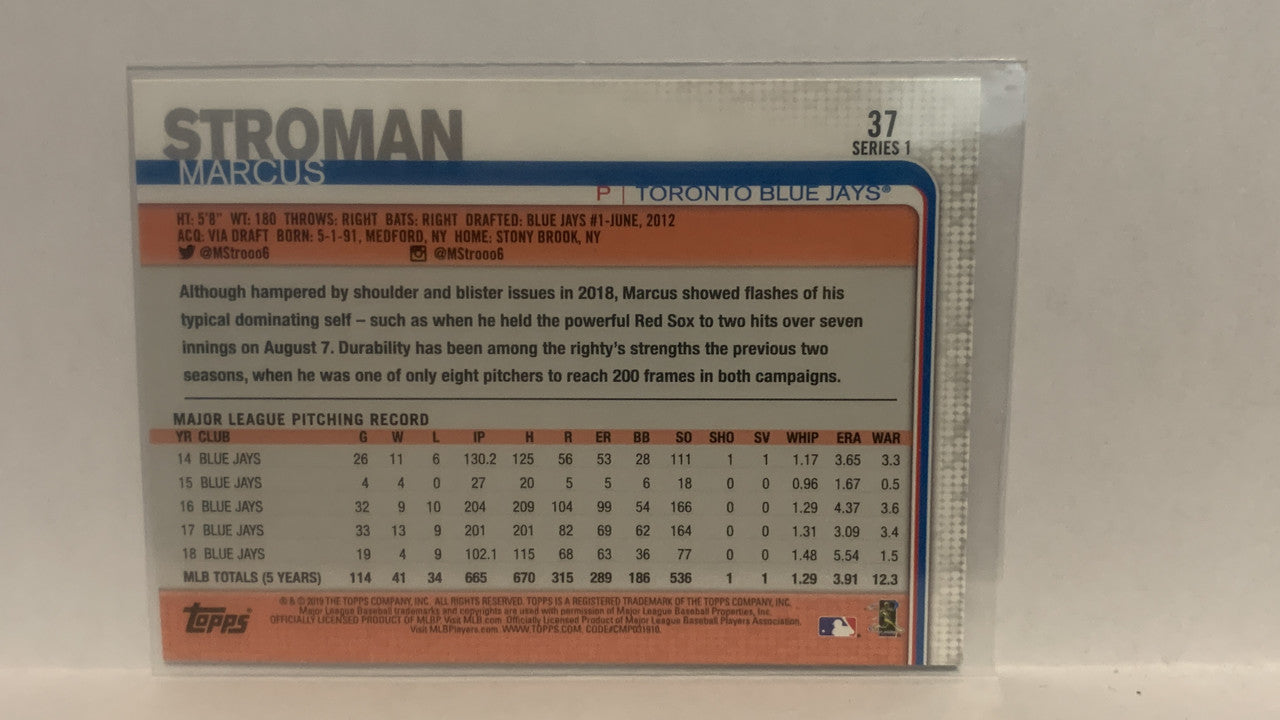 #37 Marcus Stroman Toronto Blue Jays 2019 Topps Series 1 Baseball Card
