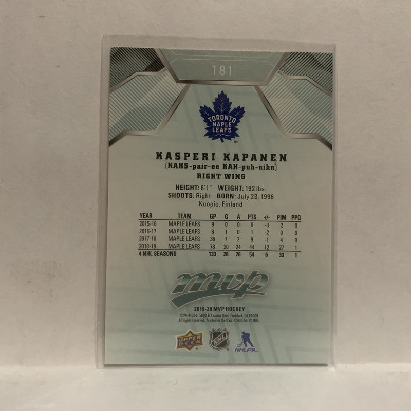 #181 Kasperi Kapanen Toronto Maple Leafs 2019-20 Upper Deck MVP Hockey Card KS