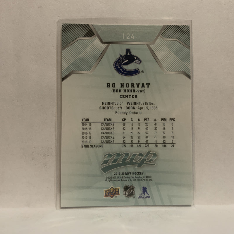#124 Bo Horvat Vancouver Canucks 2019-20 Upper Deck MVP Hockey Card KK
