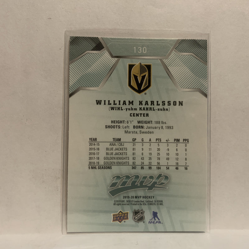 #130 William Karlsson Vegas Golden Knights 2019-20 Upper Deck MVP Hockey Card KN