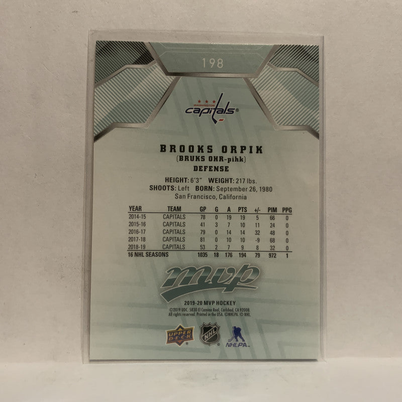 #198 Brooks Orpik Washington Capitals 2019-20 Upper Deck MVP Hockey Card KT