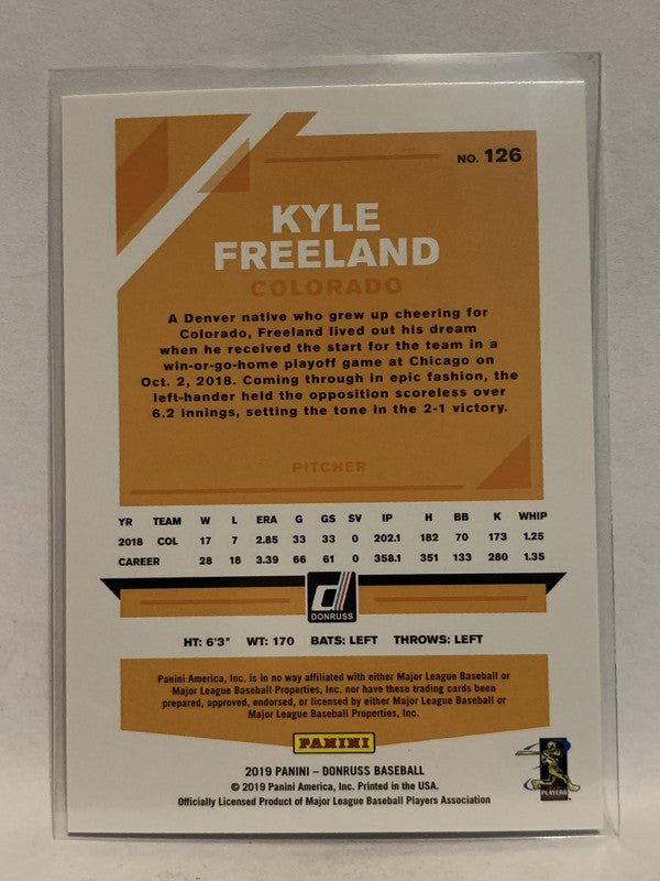 #126 Kyle Freeland Colorado Rockies 2019 Donruss Baseball Card