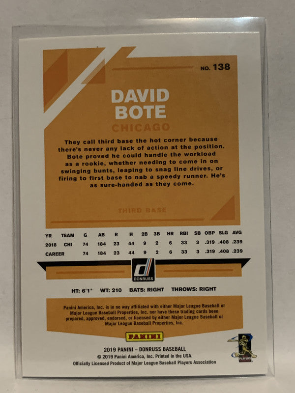 #138 David Bote Chicago Cubs 2019 Donruss Baseball Card