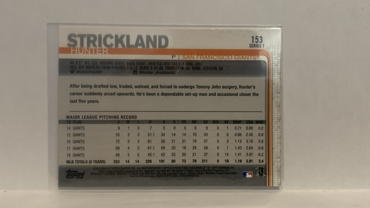 #153 Hunter Strickland San francisco Giants 2019 Topps Series 1 Baseball Card