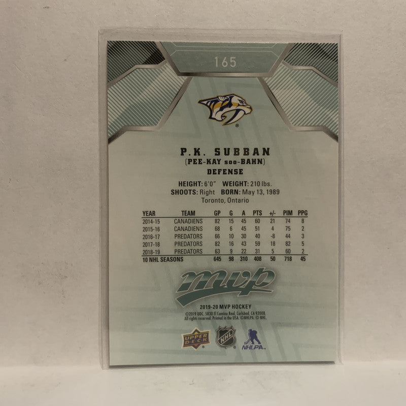 #165 P.K. Subban Nashville Predators 2019-20 Upper Deck MVP Hockey Card KY