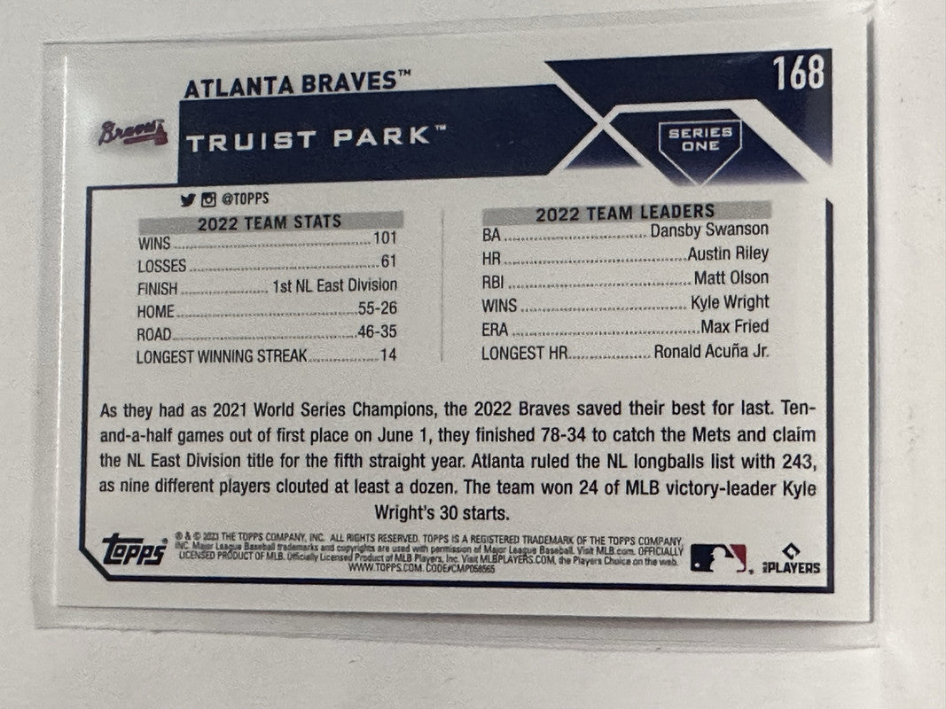 #168 Truist Park Atlanta Braves 2023 Topps Series One Baseball Card