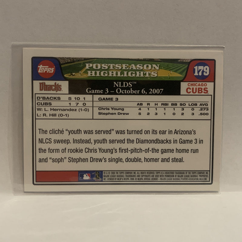 #179 Chris Young Post Season Highlights Arizona Diamondbacks Chicago Cubs 2008 Topps Baseball Card HN