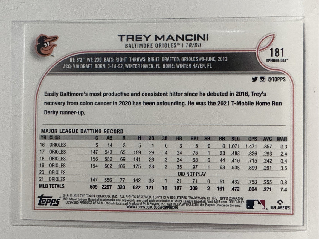 #181 Trey Mancini Baltimore Orioles 2022 Topps Opening Day Baseball Card