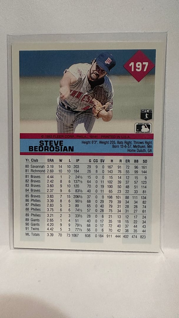 #197 Steve Bedrosian Minnesota Twins 1992 Fleer Baseball Card