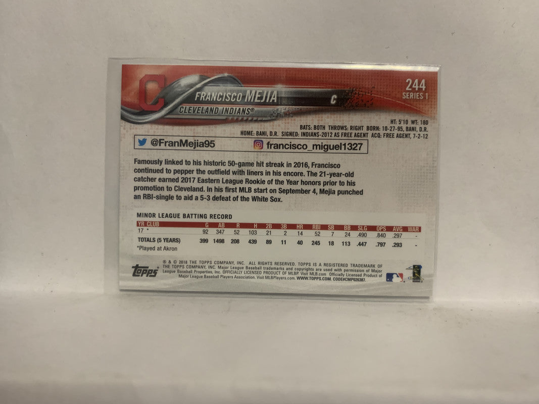 #244 Francisco Mejia Rookie Cleveland Indians 2018 Topps Series 1 Baseball Card NW
