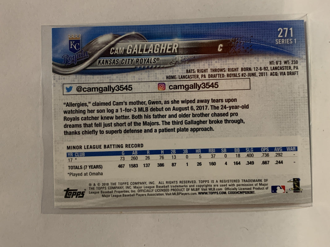 #271 Cam Gallagher Rookie Kansas City Royals 2018 Topps Series One Baseball Card MLB