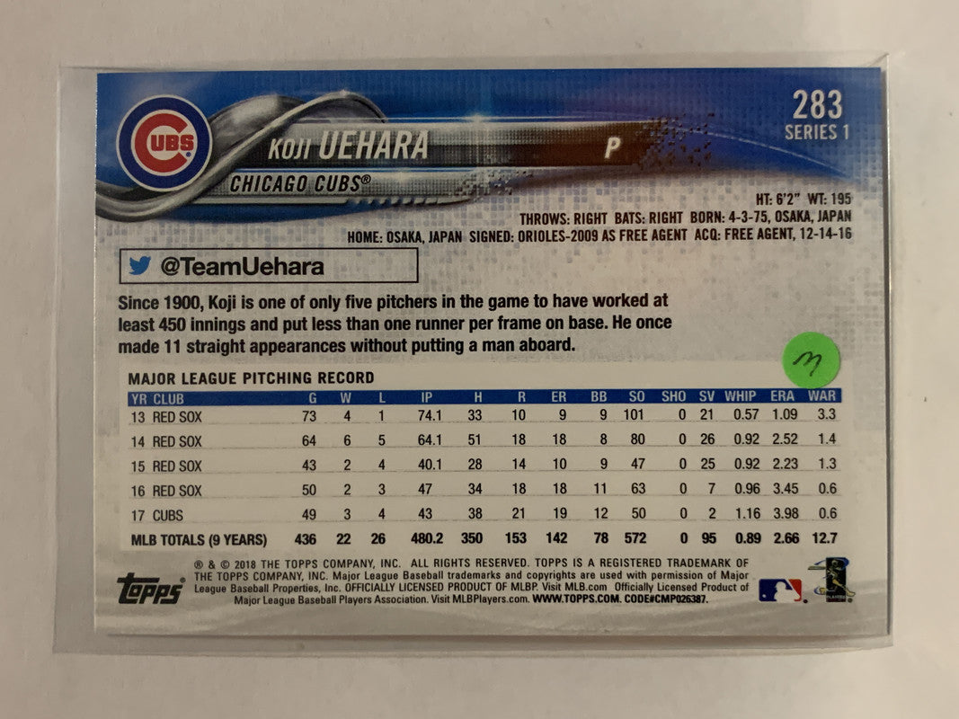 #283 Koji Uehara Chicago Cubs 2018 Topps Series One Baseball Card MLB