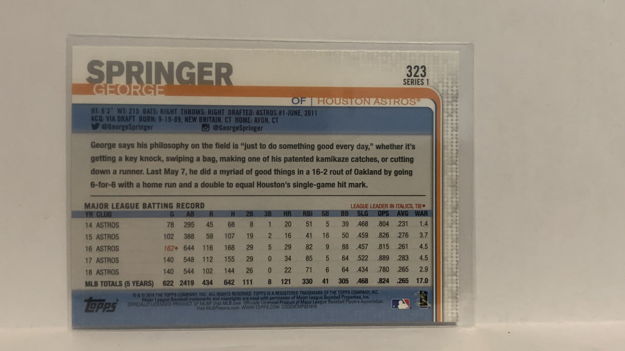 #323 George Springer Houston Astros 2019 Topps Series 1 Baseball Card
