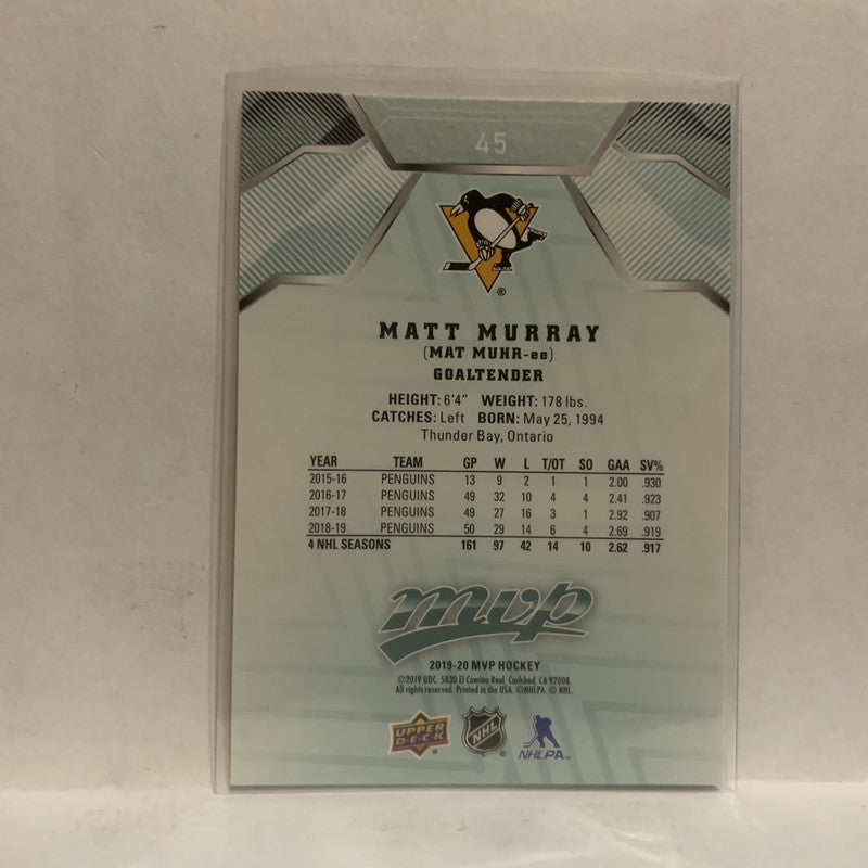 #45 Matt Murray Pittsburgh Penguins 2019-20 Upper Deck MVP Hockey Card KP