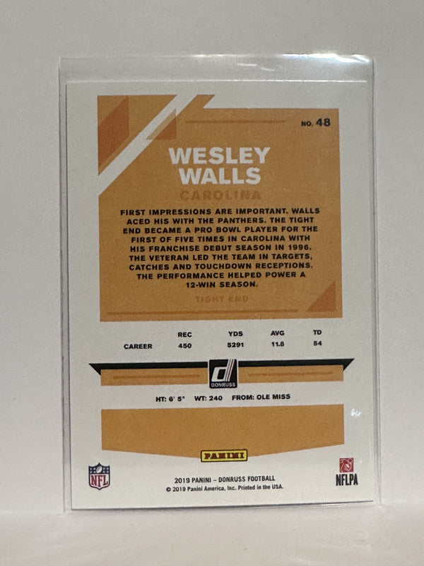 #48 Wesley Walls Carolina Panthers 2019 Donruss Football Card