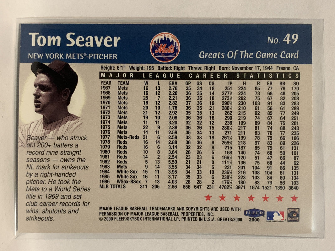 #49 Tom Seaver New York Mets 2000 Fleer Baseball Card