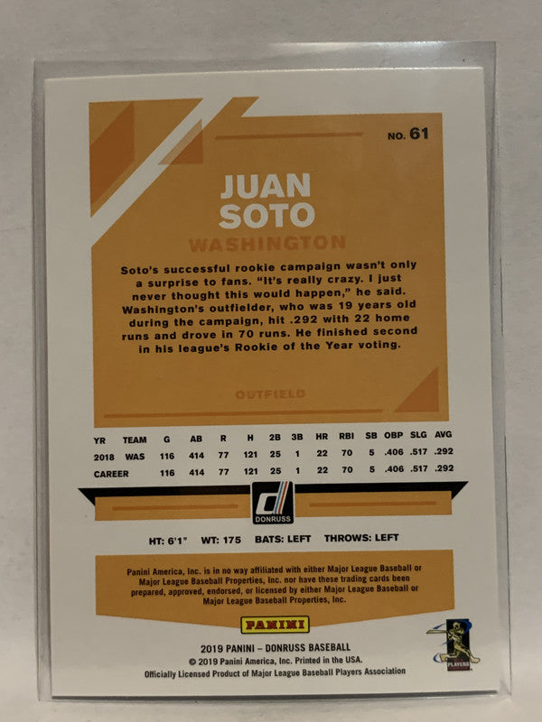 #61 Juan Soto Washington Nationals 2019 Donruss Baseball Card