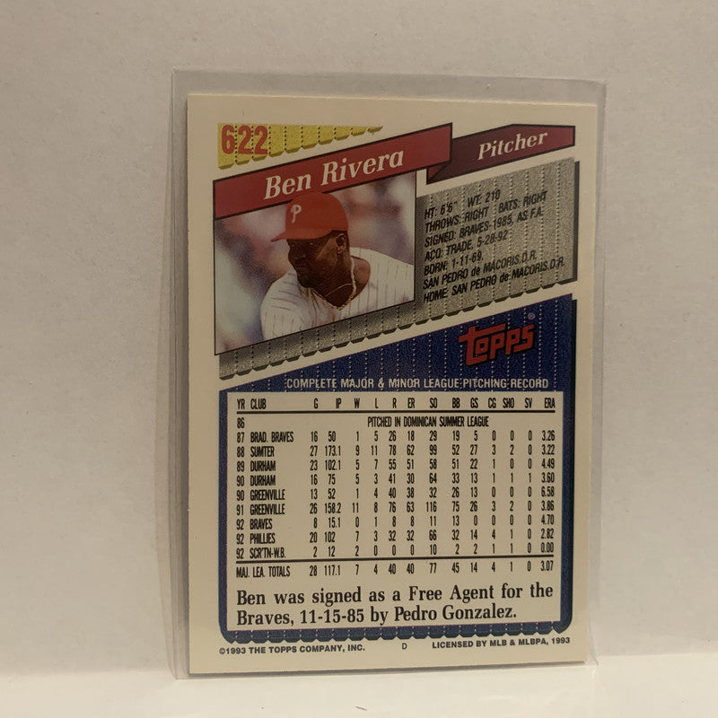 #622 Ben Rivera Philadelphia Phillies 1993 Topps Baseball Card HF