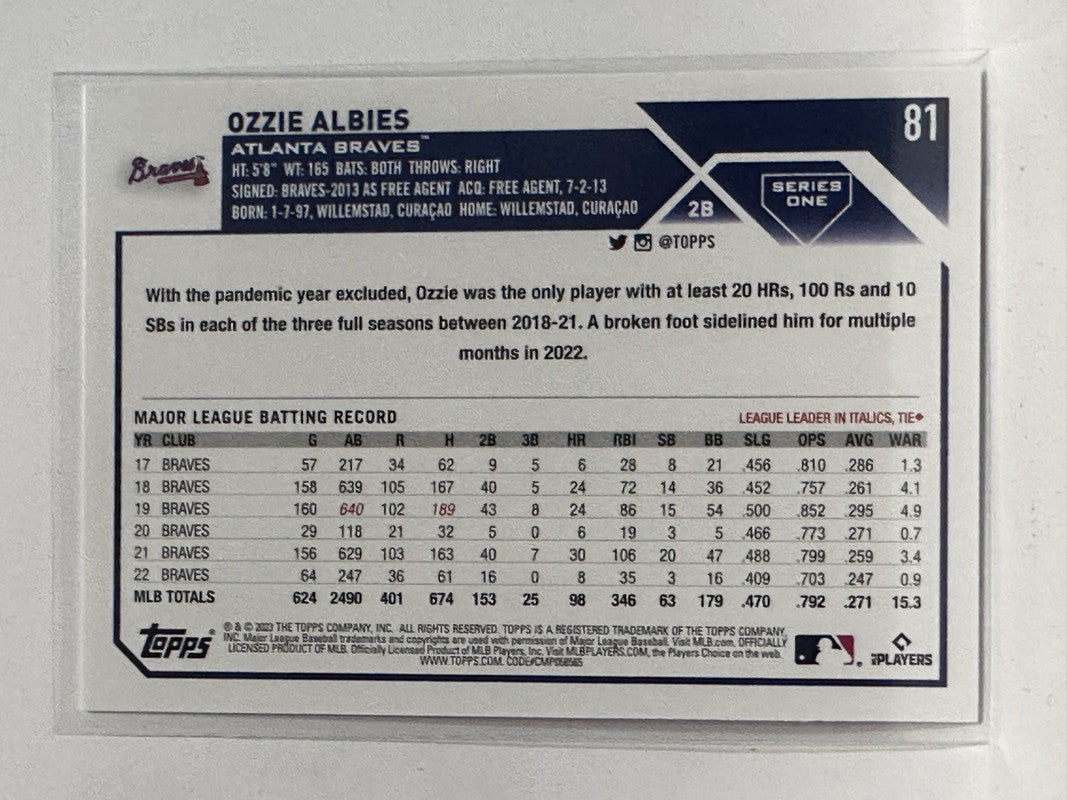 #81 Ozzie Albies Atlanta Braves 2023 Topps Series One Baseball Card