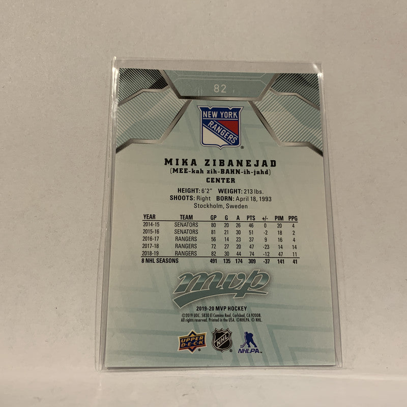 #82 Mika Ziebanjad New York Rangers 2019-20 UD MVP Hockey Card AJ