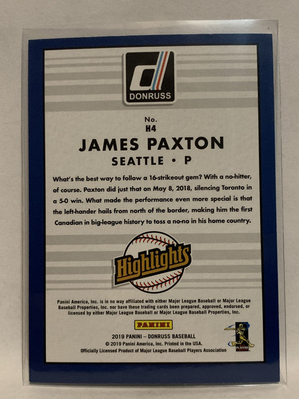 #H-4 James Paxton 195/249 Highlights Seattle Mariners 2019 Donruss Baseball Card