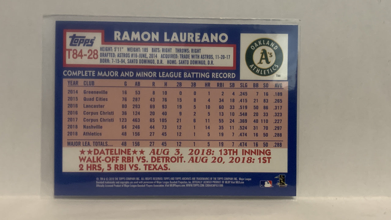 T84-28 Ramon Laureano Oakland Athletics 2019 Topps Series 1 Baseball Card